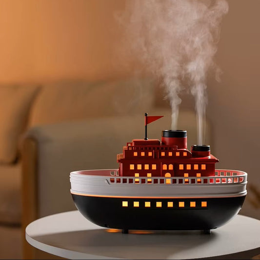 Dale un toque encantador y funcional a tu espacio con este difusor humidificador en forma de barco. Su diseño marítimo cautiva la vista, mientras que su sistema ultrasónico...