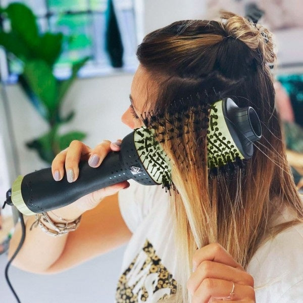 La tecnología 3D Aguacate es un exclusivo desarrollo basado en ION PLUS, que restaura la estructura molecular del cabello, devolviéndole su humedad natural, aportando brillo, flexibilidad y eliminando el Frizz. Su diseño oval, ligero y ergonómico permite usarlo tanto en cabellos secos como húmedos. Permite secar, alisar, modelar y dar volumen al cabello.