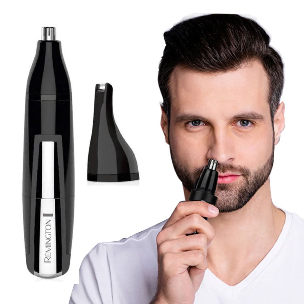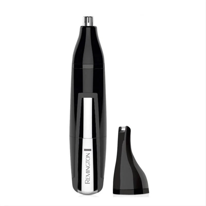 Depiladora 2 en 1 Remington para nariz, orejas, cejas y más. Sistema avanzado de corte, se mantiene afilada y fuerte. Lavable, para una limpieza rápida y fácil. Cabezal giratorio, para los vellos de la nariz y oídos. Opera en baterías. Acabado Premium de cromo