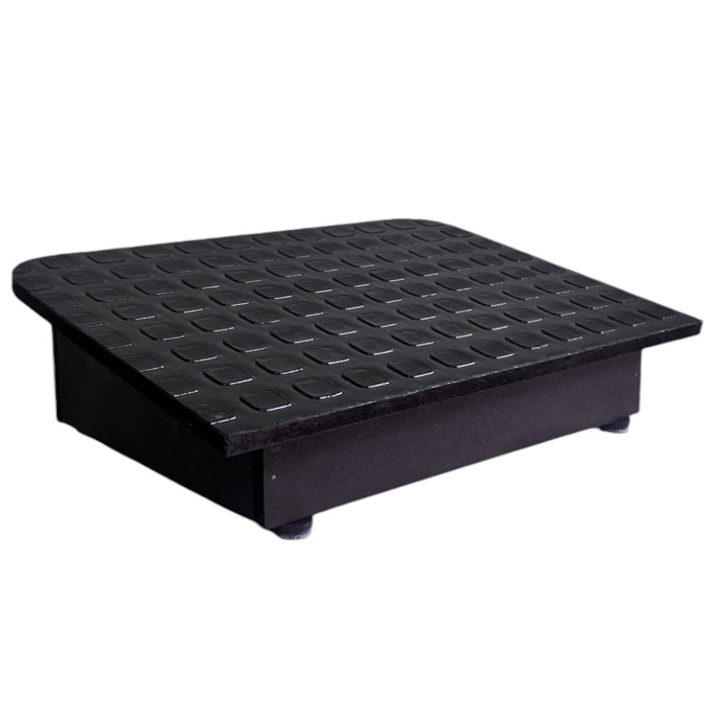 Descansa pies Fija ergonómico, y económico, totalmente Forrado en plástico negro antideslizante, ideal para mejorar la postura en los puestos de trabajo, ayuda reducir la tensión, la fatiga y previene enfermedades en la espalda, pies, rodillas y tobillos gracias a que cuenta con una plataforma amplia y estable que le permitirá permanecer prolongadas horas de trabajo.