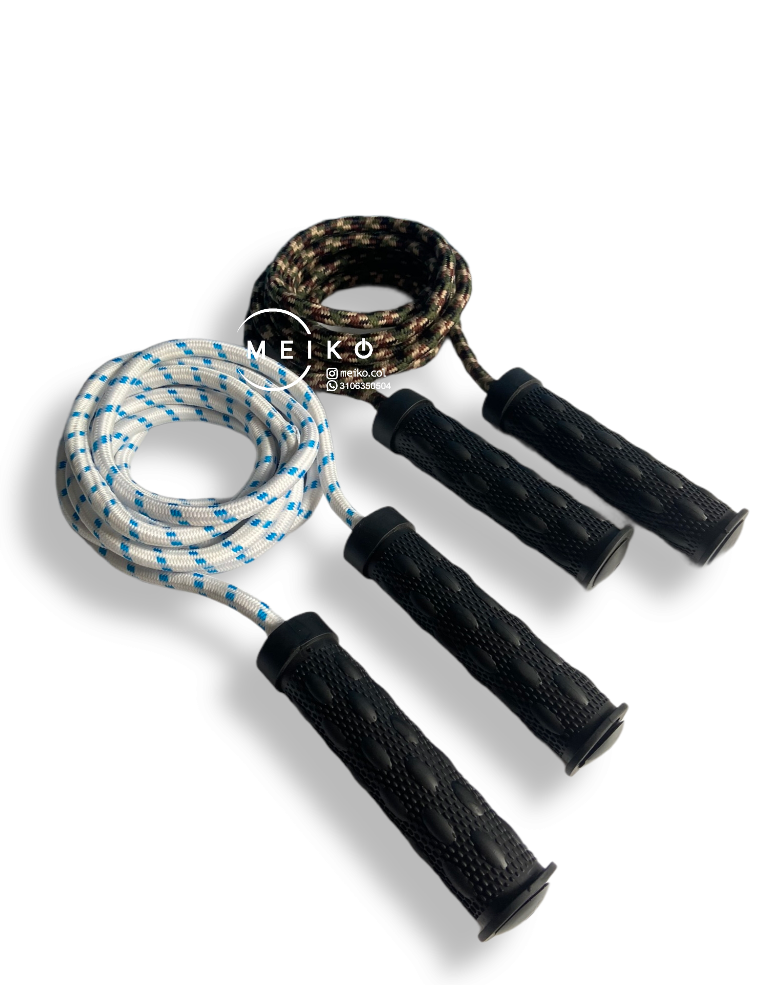 - Cubierta en nylon #6 - Mango ergonómico y liviano en plástico para mayor comodidad y agarre. - Longitud de 2.5mts - Mejora de nivel de condición física, fuerza, resistencia y perdida de -peso - Reduce la tensión y el estrés. - Ayuda a tonificar tus músculos, aumenta la agilidad y coordinación. - Ideal para quema de calorías y para mejorar la capacidad cárdio -pulmonar.