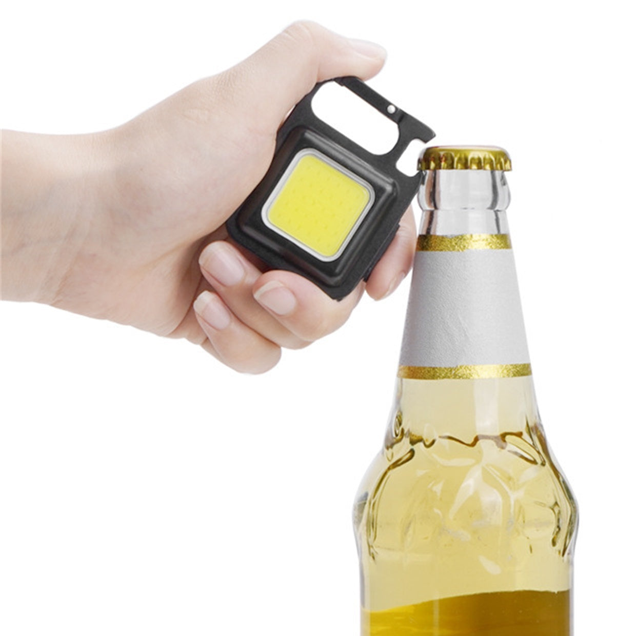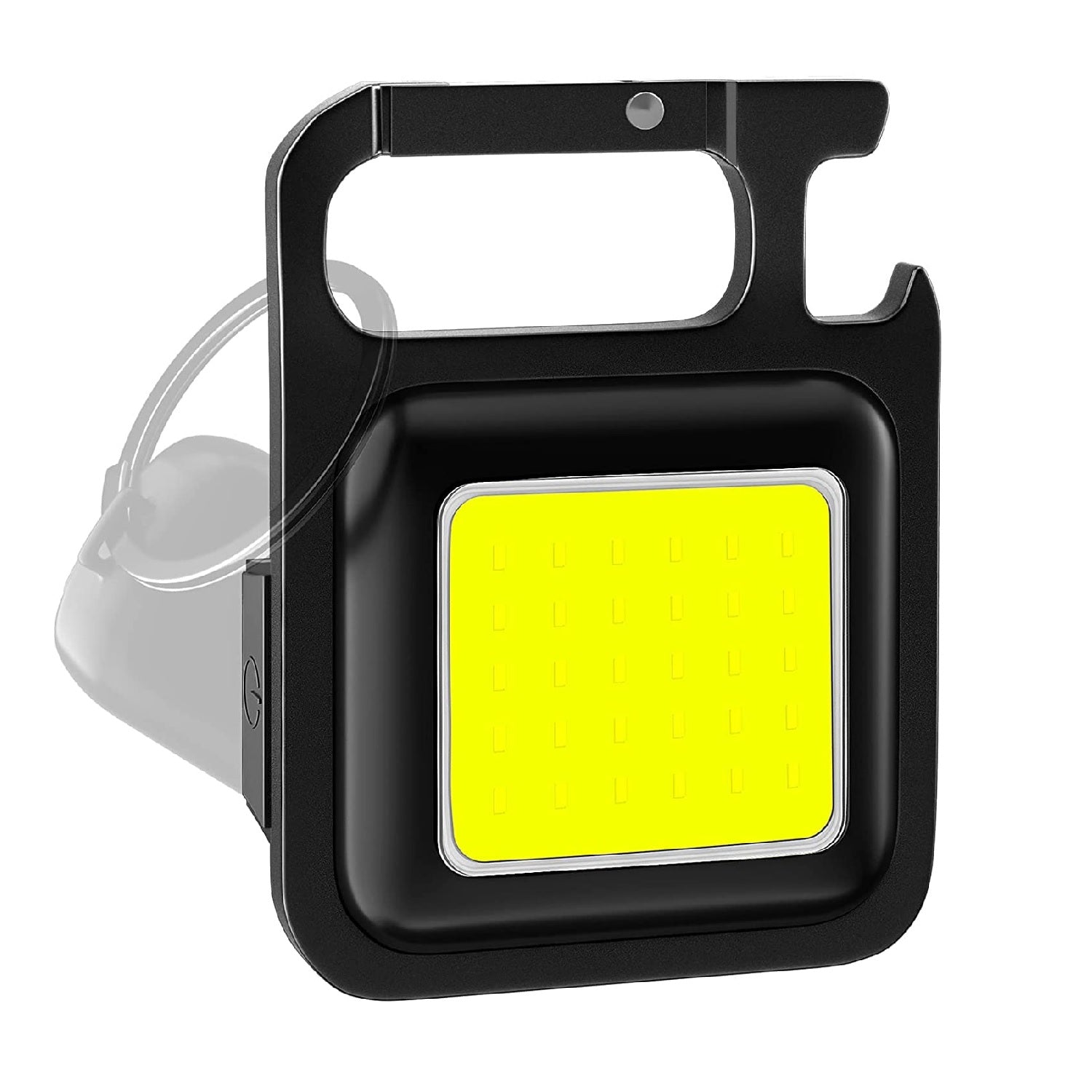 Mini linterna multifuncional: llavero, abre latas y más. Es recargable por puerto USB recargable y es perfecta para llevar en el bolso, de camping, en caminas o de emergencia.
