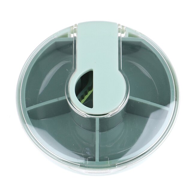- Tamaño: 8 cm x 8 cm x 2 cm/3,15" x 3,15" x 0,79" (aprox.) - Panel transparente para identificación del medicamento - Cuchilla práctica para cortar las pastillas en 2 partes - 4 compartimentos grandes para dividir y ordenar los medicamentos - Fácil de limpiar - Fácil de guardar - Capacidad variar entre 5 y 10 pastillas (dependiendo del tamaño) por compartimento