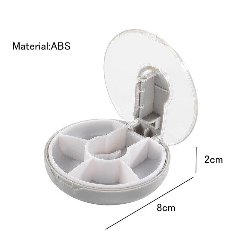 Caja almacenadora de medicamentos con práctico sistema que permite partir las pastillas más grandes. Está hecho de PC uso seguro de grado comestible. El soporte dispensador de pastillas es compacto...