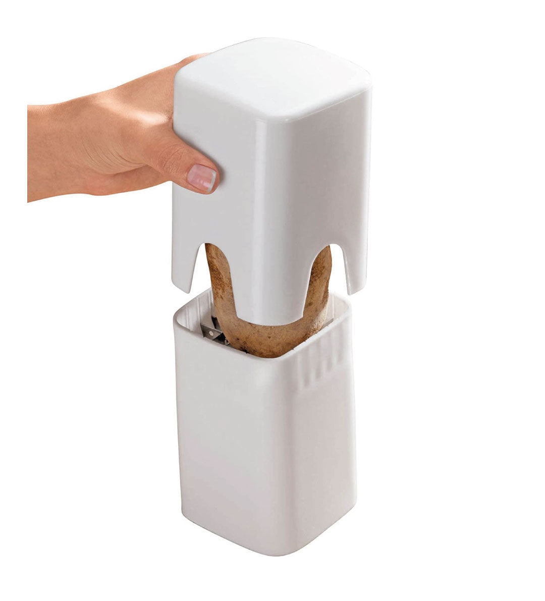 En cuestión de segundos puedes hacer deliciosas papas a la francesa gracias a este cortador. También podrás usarlo con otras verduras a las que quieras aplicar el mismo corte como por ejemplo, zanahorias, cebolla, pepino y otros. Pasos muy sencillos para operar: solo tienes que colocar una patata de tamaño medio e y luego presionar la cubierta. El cortador de papas fritas hecho de acero inoxidable y plástico de alta calidad será una excelente herramienta que se convertirá en un verdadero asistente en la cocina. Una forma rápida y fácil de hacer deliciosas papas fritas caseras.