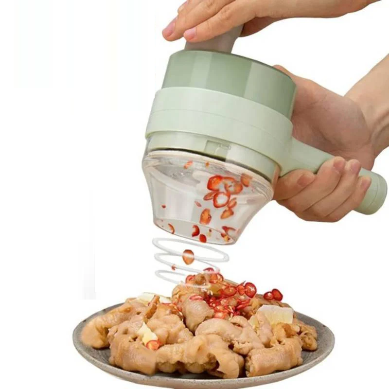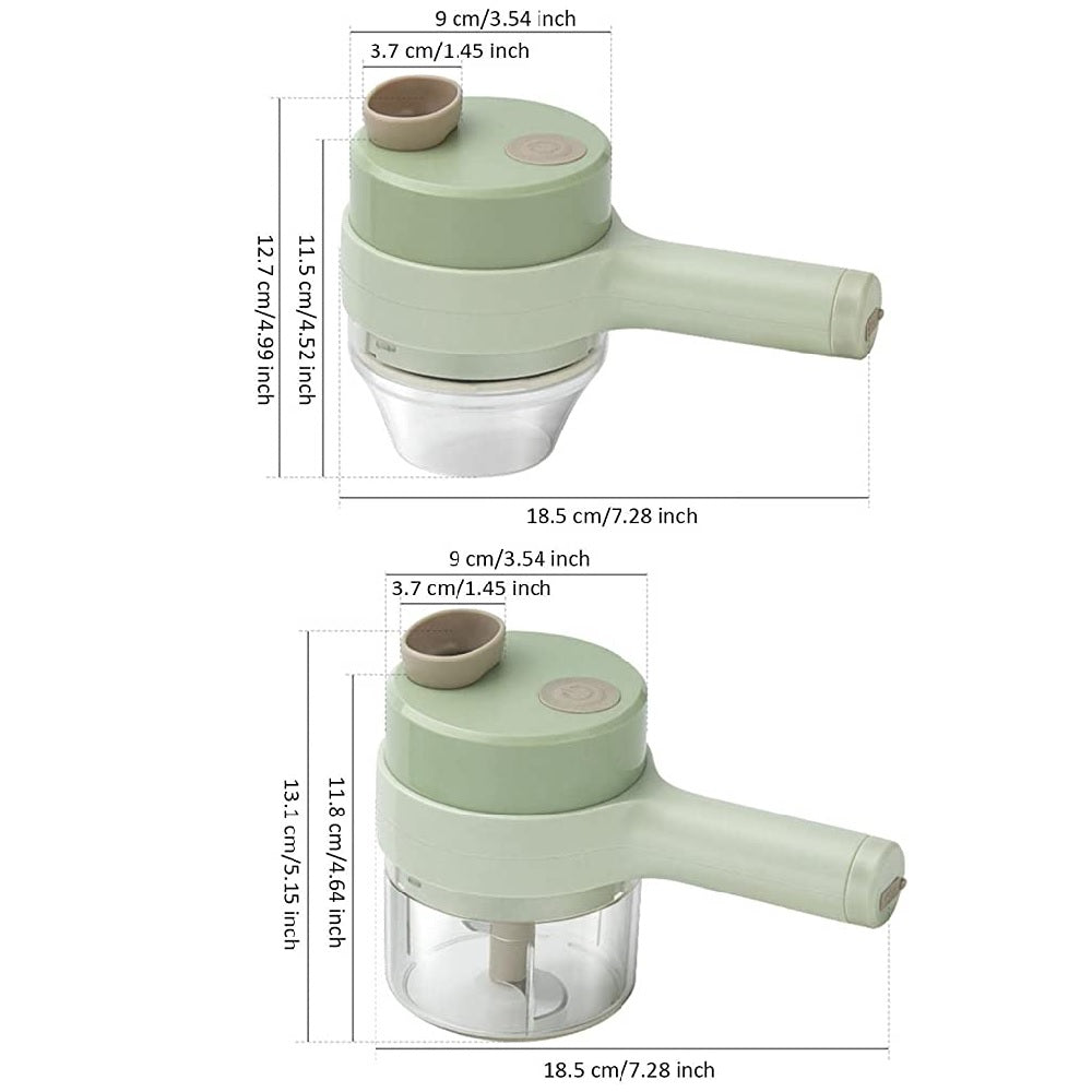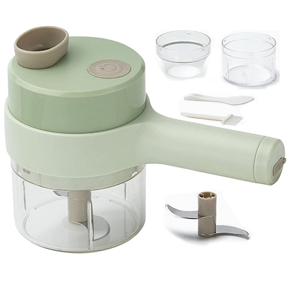 Cortador de verduras eléctrico de mano 4 en 1: La cortadora de verduras eléctrica de mano incluye funciones 4 en 1 de corte, trituradora, pelado y cepillo de limpieza. Corta rápidamente: el potente motor eléctrico mini chopper de 40w reducirá tus alimentos y los cortará rápidamente. Perfecto para cortar nueces, hierbas, verduras, carne deshuesada y otros ingredientes comunes, para hacer alimentos para bebés, pesto, hummus.