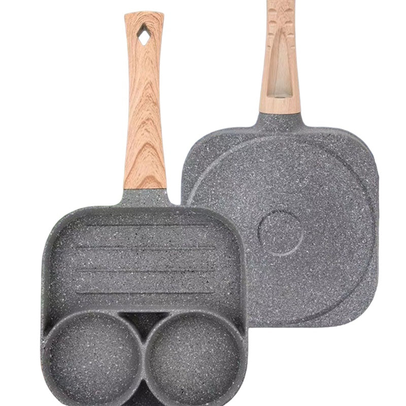 Espectacular sartén multifuncional. Puedes prerar 2 huevos al mismo tiempo que verduras, quesos, tocino u otros. Cuenta con 3 divisiones que te permitirán optimizar tiempo y ahorrar energía o gas en la preparación de alimentos.