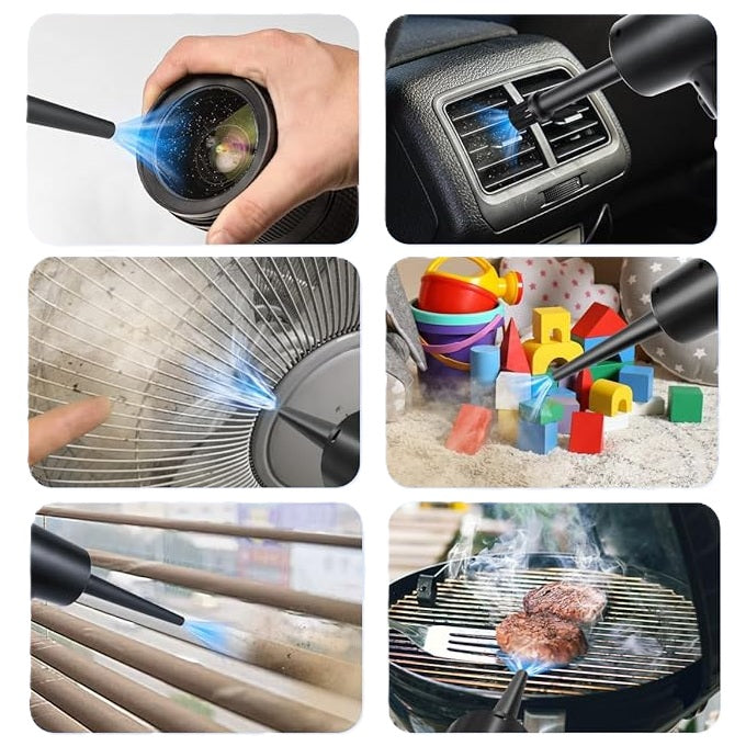 Dile adiós al polvo acumulado y a los costosos sprays desechables. El soplador de aire eléctrico Fulljion es la herramienta que combina potencia, practicidad y sostenibilidad. Su motor de 51 000 RPM elimina el polvo más rebelde de computadores, teclados, consolas, autos o cámaras, sin químicos ni residuos. Compacto, recargable y con batería de larga duración, es la alternativa moderna y ecológica al aire comprimido tradicional.