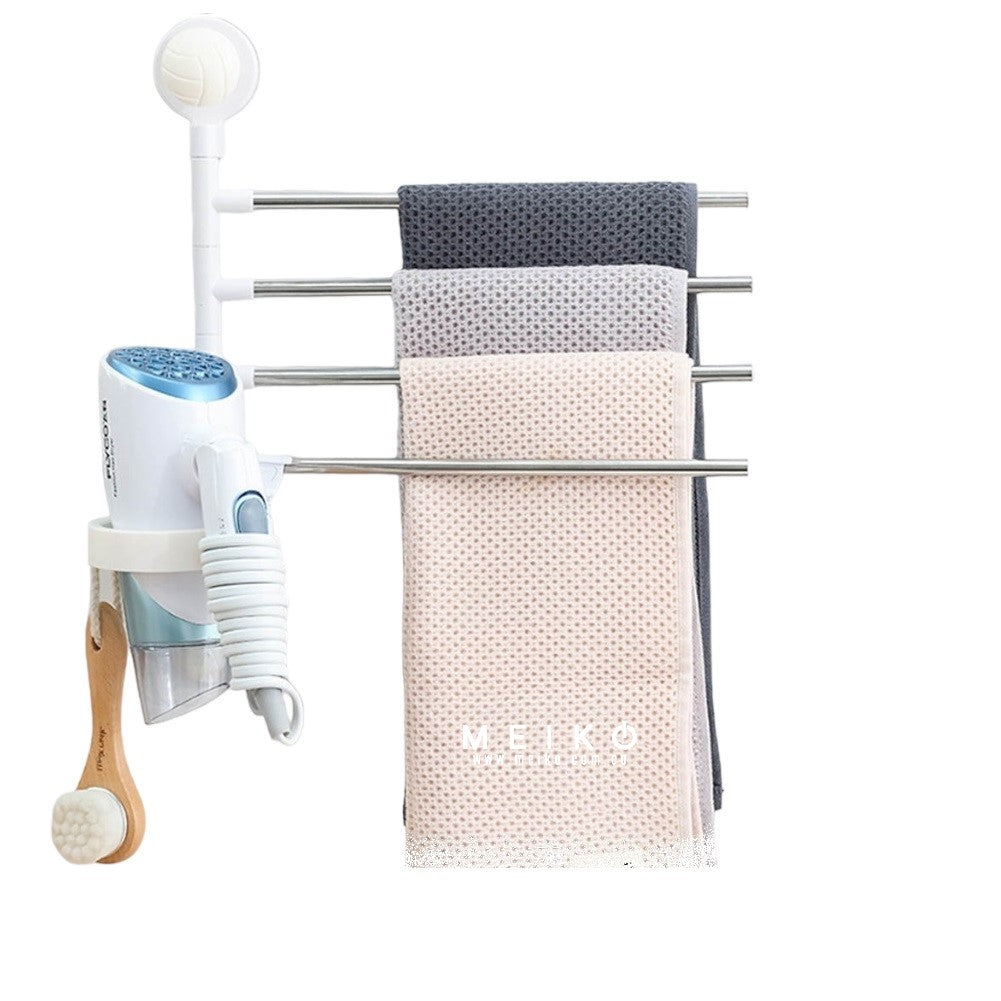 Toallero porta secador minimalista de 4 niveles. La solución perfecta para ordenar tu baño o salón de belleza. Contiene 4 tubos giratorios para toallas u otros implementos + aro para...