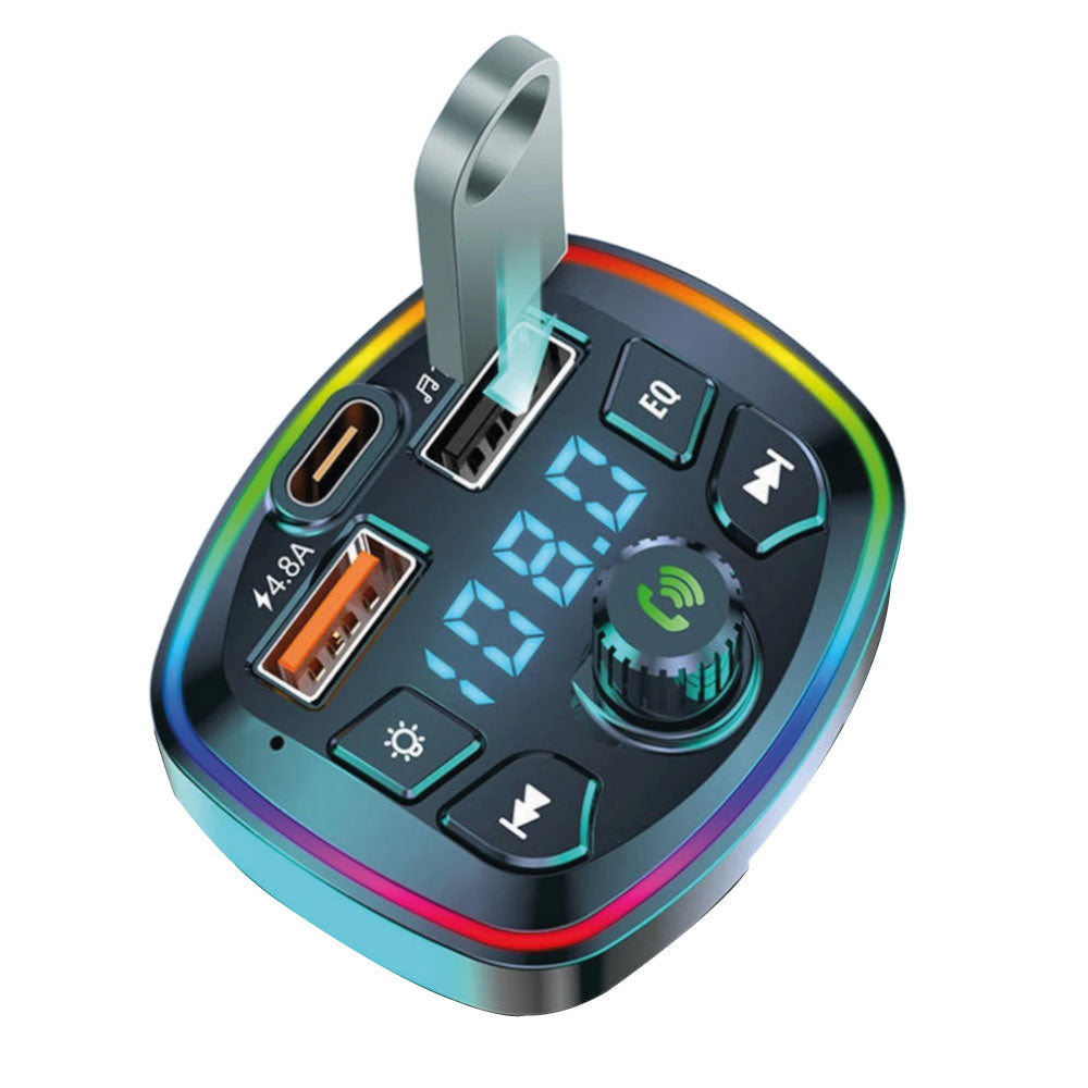 Receptor transmisor para música y llamadas en el carro. Capaz de reproducir música desde medios de almacenamiento a tu automóvil. Bluetooth te permite escuchar música directamente desde nuestro smartphone o utilizar el dispositivo como manos libres para contestar tus llamadas a través de los altavoces del coche mientras conduces, sin tener el teléfono en las manos. Dispone de gestión de música integrad, teclas de contestador y display LCD. El dispositivo tiene 2 puertos USB para cargar su teléfono u otros dispositivos. Póngalo en el enchufe del encendedor de cigarrillos de su automóvil y ¡está listo para usar!